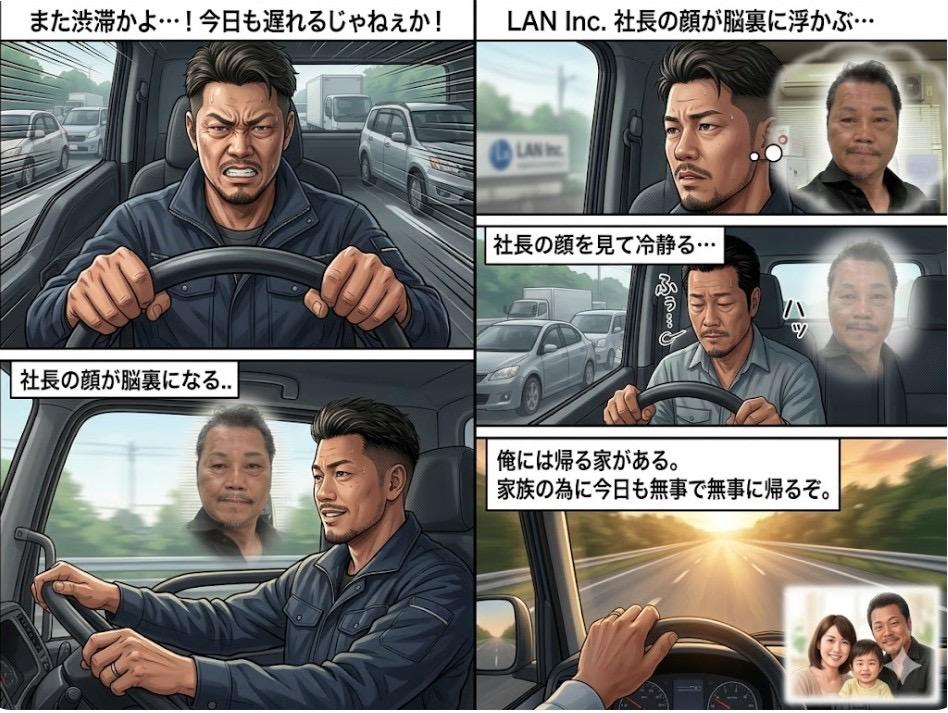 迫る時間、進まない車列。焦りとイライラは、知らず知らずのうちに運転を荒くし、危険な状況を招いてしまいます。この漫画の主人公も、まさにその瞬間でした。
