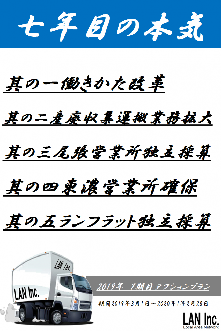 営業所は支局の認可申請再挑戦!物流センターは初の試みです。会社の成長無くして売上up利益upは無い!社長の成長無くして社員の成長は無い!まだまだ「本気の精神」で走り続けます!