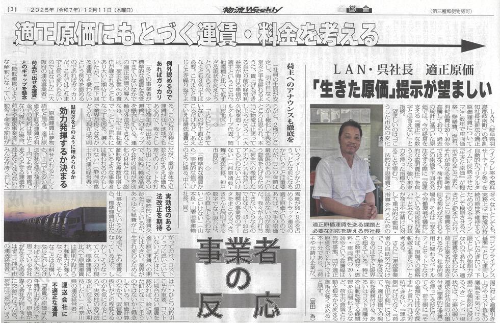 この特集は、まさに今の運送業界の最大テーマである 「適正原価=本当に必要なコストを反映した運賃設定」 を、現場の声や課題とともに取り上げたものです。